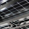 - Die Aluminiumrahmenkonstruktion besteht aus vier offenen Seiten und einem leicht geneigten Dach aus Solarmodulen.